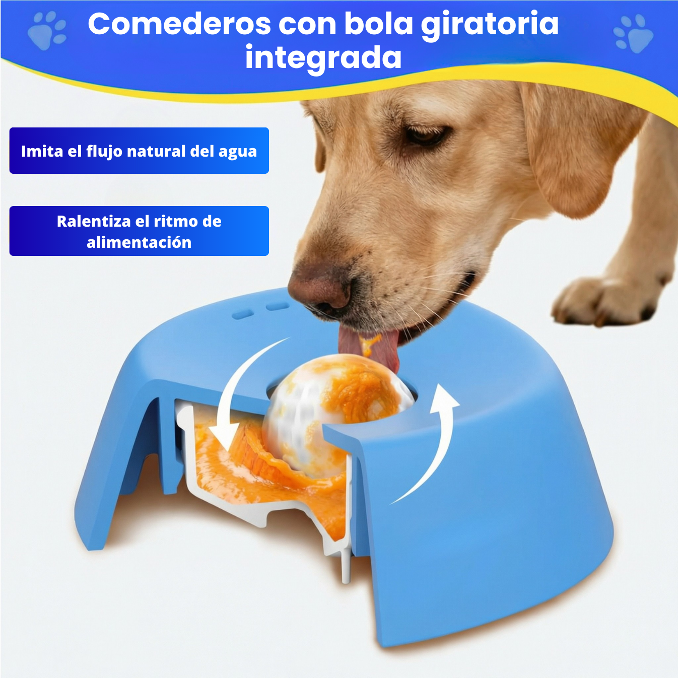 La bola giratoria libera el contenido de forma progresiva, evitando que tu perro coma demasiado rápido y ayudando a una digestión más cómoda.