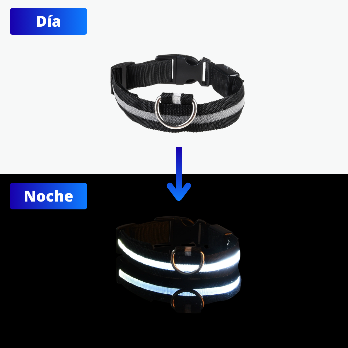 El diseño reflectante garantiza visibilidad al anochecer y durante los paseos nocturnos.
